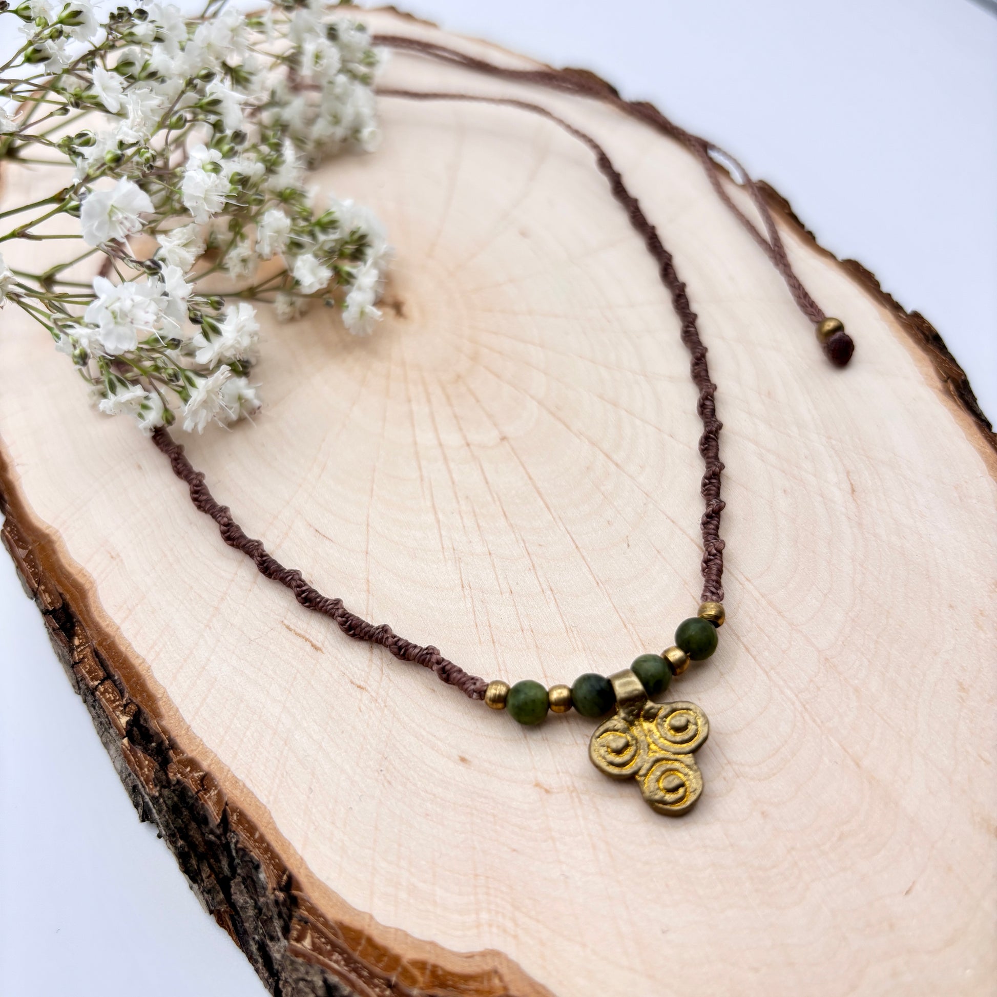 Feine Halskette mit Messinganhänger und Serpentin Perlen. Durch den Schiebeverschluss ist die Kette grössenverstellbar.