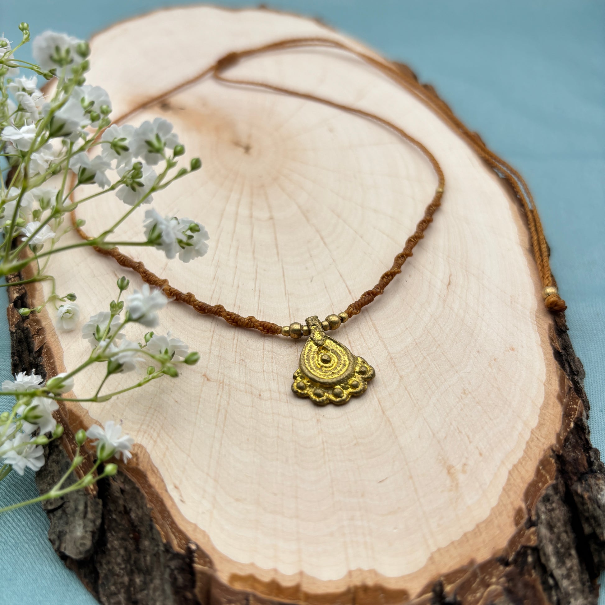 Makramee Halskette mit Messinganhänger