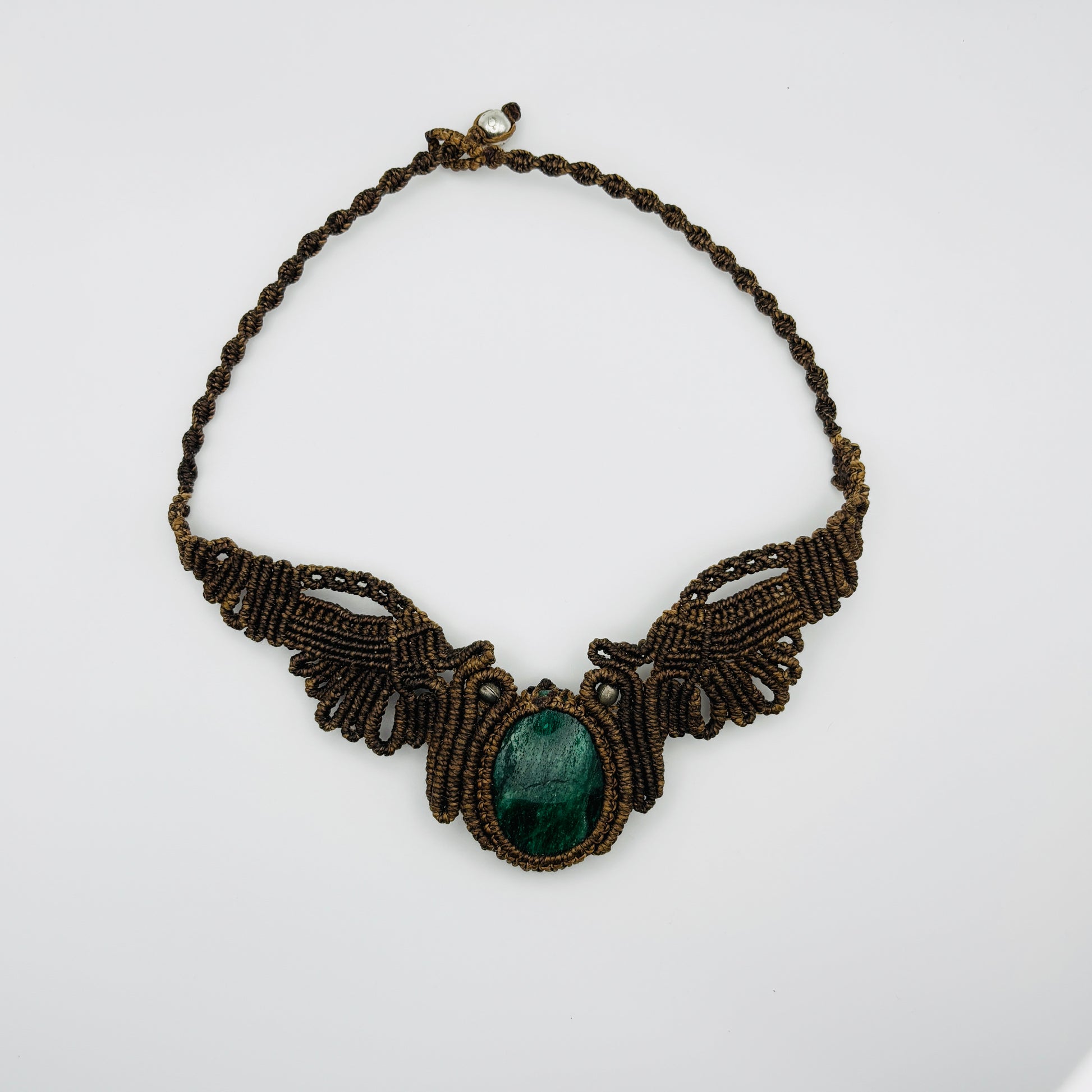 Diese kunstvoll eingeknüpfte Statementkette mit eingefasstem Aventurin zieht alle Blicke auf sich. Der natürliche Glanz des Aventurins verleiht Ihrem Outfit eine elegante und zugleich kraftvolle Note. Perfekt, um Ihrem Stil eine individuelle und besondere Ausstrahlung zu verleihen.